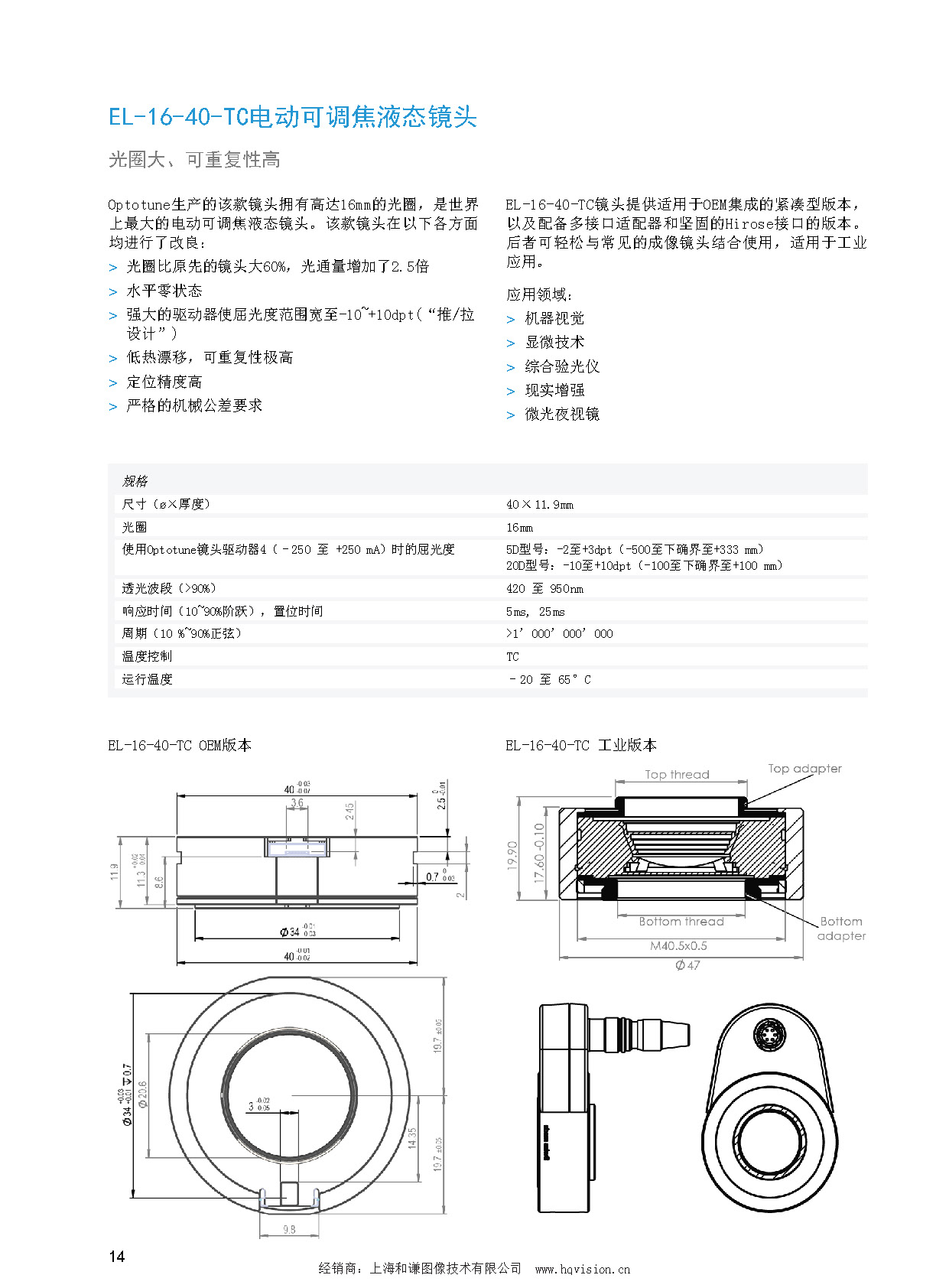 首頁 光源和鏡頭 Optotune 液態鏡頭